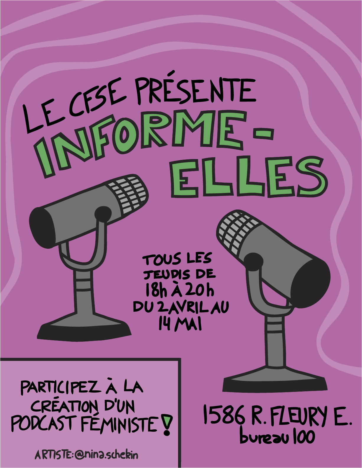 Le Centre des femmes solidaires et engagées (CFSE) présente InformElles, une invitation à co-créer un balado féministe mettant de l’avant les réalités et les luttes des femmes, dans une démarche collaborative et engagée. Les jeudis du 9 avril au 14 mai, au CFSE.
